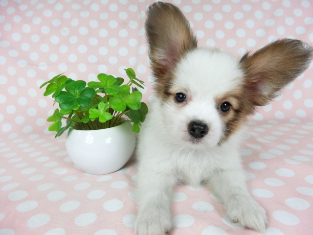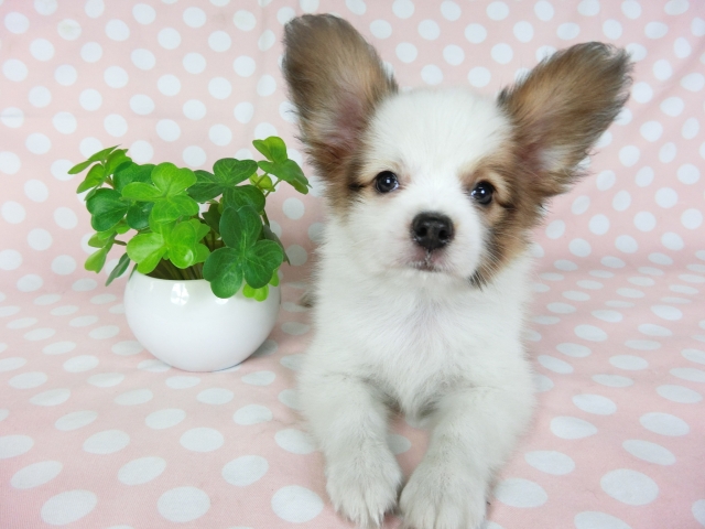 パピヨン ホワイト&レッドセーブル ♂(男の子) 千葉県【 パピヨン・ブリーダーズ 】