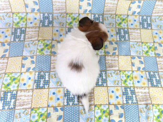 名古屋からお迎えしました。チワワちゃんを亡くし途方に暮れていた中ミックスの子迎えました。帰りの新幹線でもお利口でした。お迎えまで1ヵ月ありましたがしっかりと配慮の行き届いた対応して頂きました。預かっているあいだに社会性を学んだみたいで初日から一通り出来ました。歴史のあるブリーダ-ならではの安心です。待っているあいだも写真や動画送って下さり名前で読んで下さり初日から自分の名前わかっているかのようです。とても健康で生きがよく愛嬌最大限です。ミックスなのでどのように育つかわからないところが育てがいがあります。ご飯ももりもり食べてうんちもしっかりしています。こんな可愛く健康な仔犬をお譲り下さり感謝致します。こんなに丁寧で細部まで至れり尽くせりですみません。安心して共に暮らしていけます。この度は本当にありがとうございました。(愛知県 男性)
